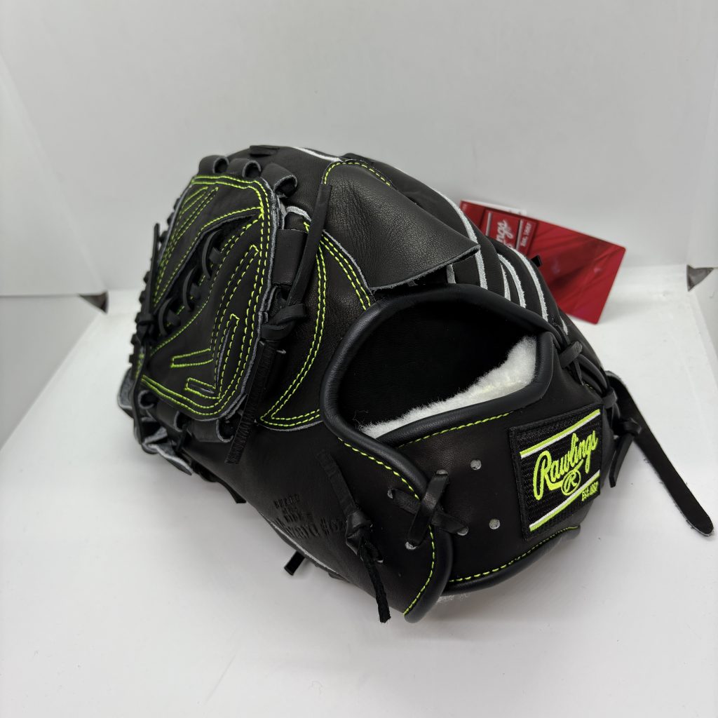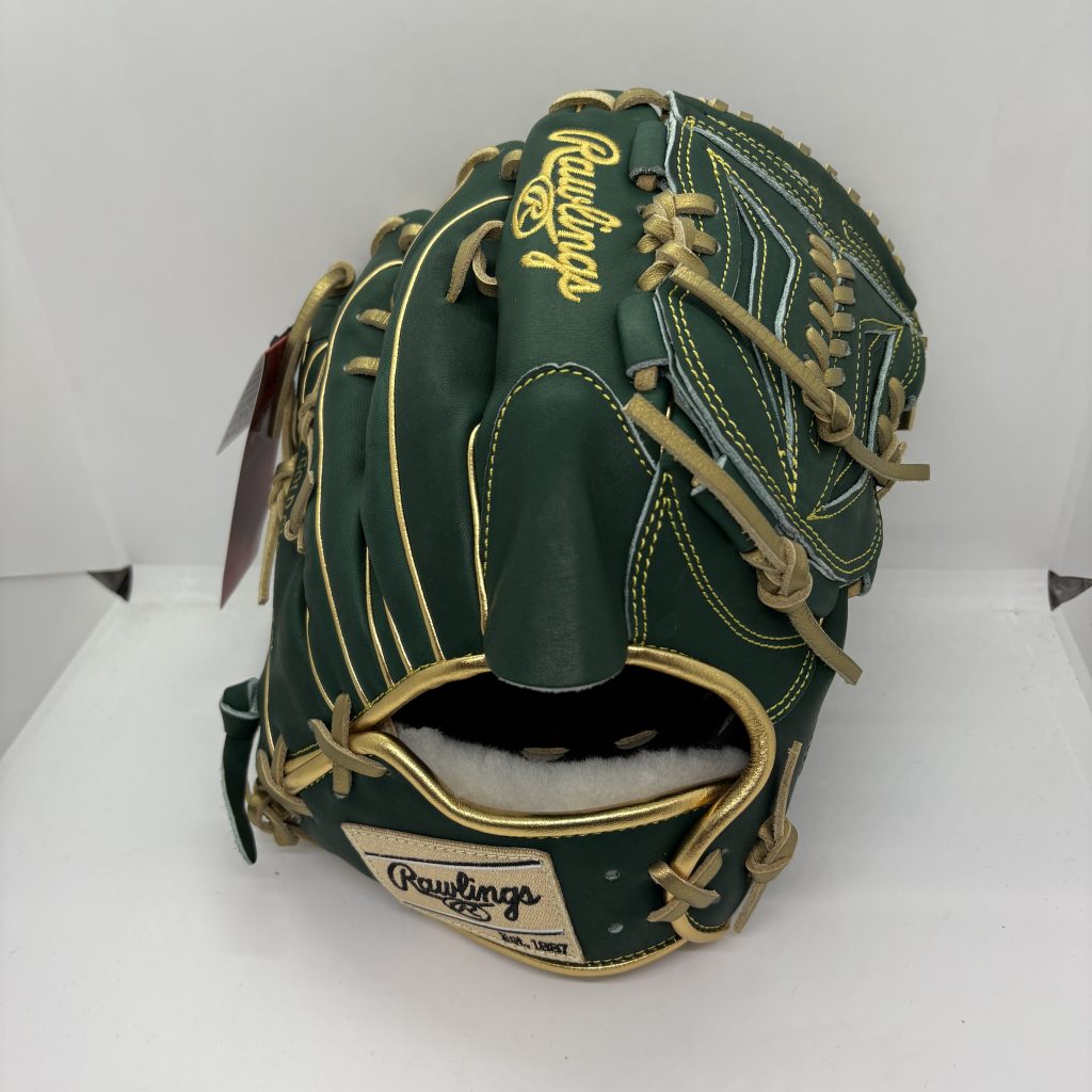 ダークグリーンにゴールドヘリ革がたまらんカッコよさ!軟式投手用