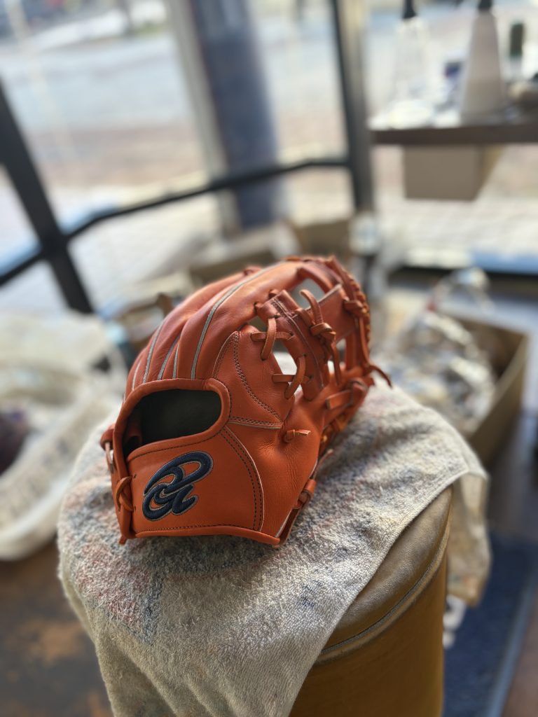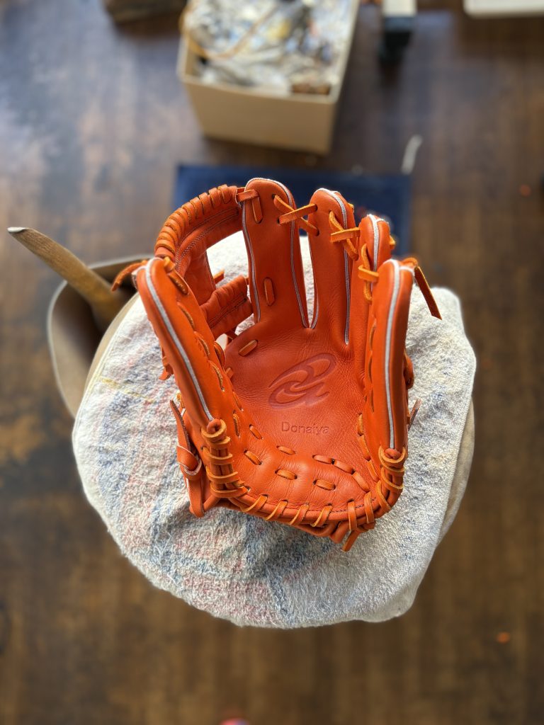 ドナイヤ15周年記念グラブ軟式用オレンジ 型付け仕上がりました