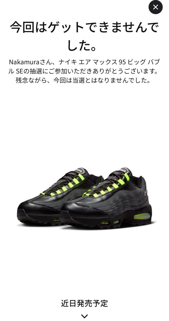 今日は何気に気になっていたエアマックス95HRJの抽選日でした