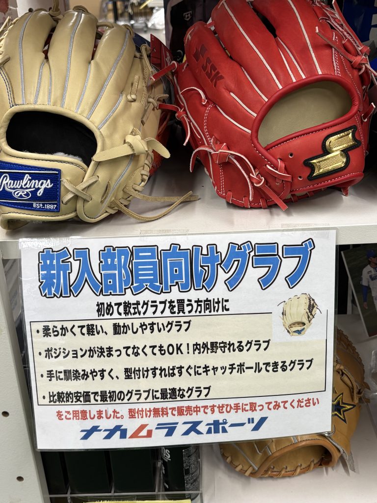 今回は、柔らかくて低価格でお求めやすい新入部員向けのグラブをご紹介しました